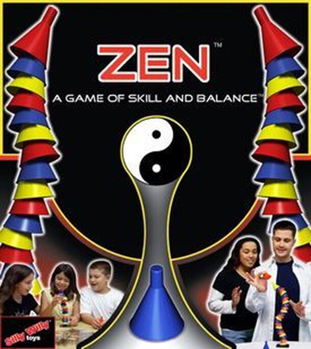 Zen is a stacking game -- or tower building game -- where players stack inverted funnels on top of one another. Before placing a new piece, the active player can actually manipulate the stack in the hopes of achieving the proper balance in preparation for the play. Multiple Zen sets allow for players to race against one another to see who can get the...