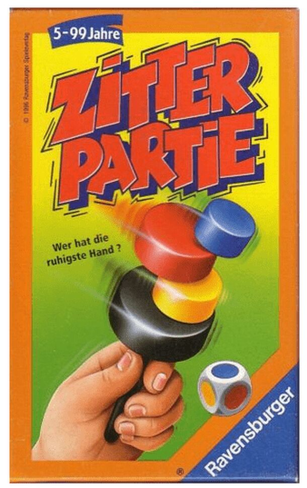 A simple dexterity game consisting of a small platform with a stick attached to it, 12 colored gaming pieces, 1 colored die and 5 chits. The active player holds the stick with the platform in one hand and rolls the die with the other. He then puts one of the gaming pieces (in the color corresponding to the die roll) onto the platform and then passes the...