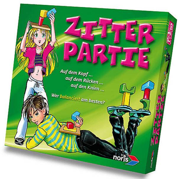 A cork plateau, building blocks and constructions, which must be made up from the blocks - and yet neither Bamboleo nor Make 'n' Break, but balance and dexterity, because you must balance the cork plateau on your back or your head or your knees and hold the plateau in balance for at least 2 seconds. You draw a card, place the plateau accordingly on head...
