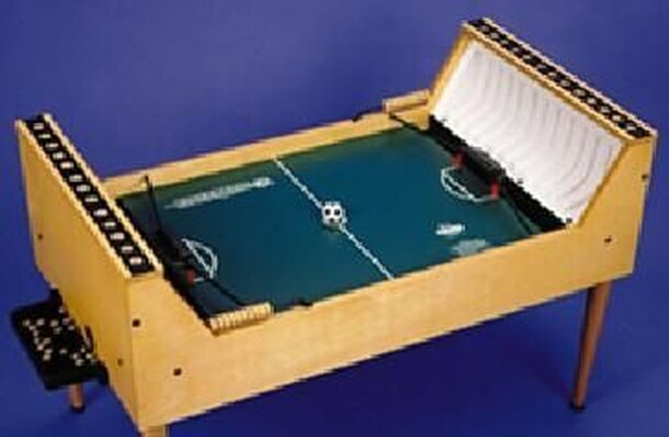 From the publisher's site: Boccerball is a new exciting fast paced marble soccer game that is fun for all ages. The object of the game is to knock a soccer ball into your opponents goal by quickly dropping steel marbles down as many chutes as possible onto the playing surface. The first player to reach a predetermined number of goals wins. There are many...