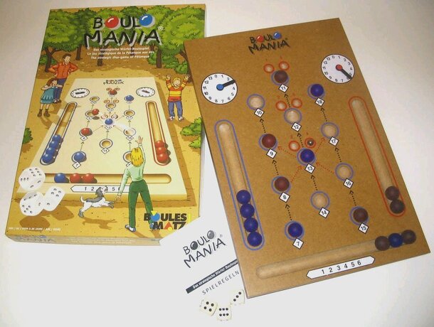 Information from the publisher's website. How to play BOULOMANIA: First of all, each team throws one dice to see which team starts. The one with the higher number goes first (Team A). Team A throws on dice to determinate the position of the jack (one of the spaces 1-6) and so places the jack. Then, throwing a choice of two or three dice, Team A determines...
