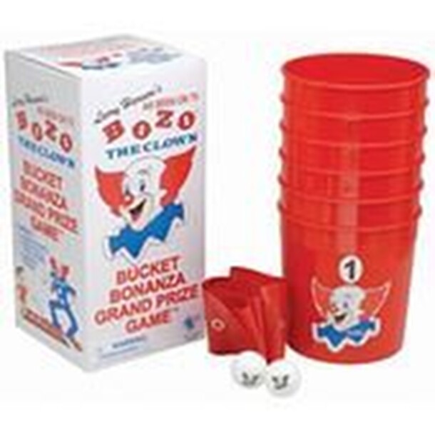 From the product description: "Relive the past with the classic Bozo Buckets! This Bozo-Riffic party game is based on the original classic featured on WGN's Bozo's Circus, and is now available due to popular demand! This well-known game comes with 6 plastic buckets which are made to easily snap to the included vinyl strip that properly aligns and spaces...