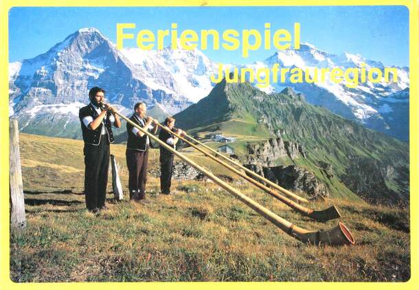 FERIENSPIEL JUNGFRAUREGION is a Swiss game that has more than a little of Monopoly about it. Players progress around the board according to die rolls. When landing on property squares players hae the option of electing to purchase them from the bank, though larger properties cannot be purchased until the three smaller properties in the same set (of four)...
