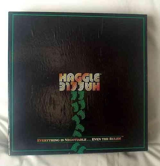 Haggle is a thinking game for a large group of people. It can be played at a party or over the course of a full day. One person serves as moderator, and devises a secret set of scoring rules and prepares a number of colored cards for use as scoring markers. The moderator starts the game by handing each player a sealed envelope containing a small number of...
