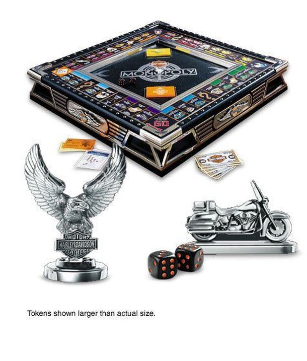 Incorporating the classic strategy of the Monopoly game with the Harley-Davidson® legacy of open-road freedom. With a full complement of individually sculptured gaming pieces, each lavishly coated in sterling silver. Combining legendary Monopoly game graphics with illustrations that celebrate the history of Harley-Davidson® motorcycles, the handsome...