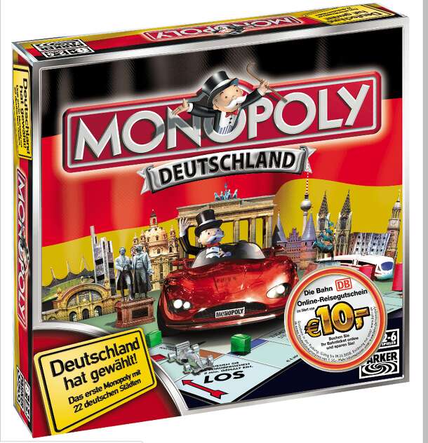 From the manufacturers description: The famous game about rents, power and money as Germany edition. For the first time with the most popular cities and sights of our country. In this edition one buys Saarbrücken or Heidelberg instead of park place or connecticut avenue and builds houses and hotels. Monopoly Deutschland has the known Monopoly rules, but...