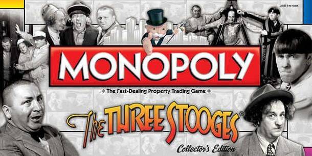 Publisher Blurb: Calling all knuckleheads! It's time to wheel and deal with Curly, Larry and Mo, the kings of slapstick. Enjoy this classic game of risk taking and deal making as you compete to own memorable locations from the Three Stooges films. Laugh out loud as you buy Moronika and Mildew College; sell Rutentuten’s Tomb and the Los Arms Hospital; and...