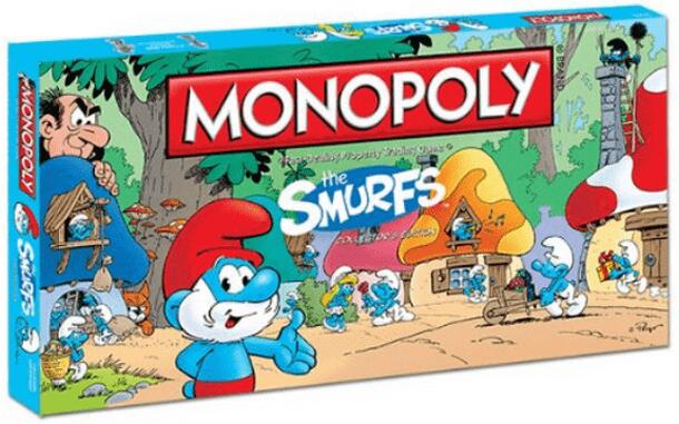 Publisher Blurb: It's the Smurfiest MONOPOLY ever! The Smurfs edition of Monopoly allows fans to buy, sell and trade classic locations in the Smurfs' village such as Papa Smurf's Lab, Smurfette's flower garden and Hefty's weight room. Tra la la la lala your way around the board with Smurf character tokens while buying up properties with Smurfberries and...