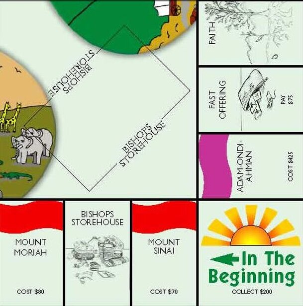 An LDS variant of Monopoly in which players compete to build churches and do good works. From the publisher: Mormon-opoly is a creative and exciting LDS game based on the principles and history of The Church of Jesus Christ of Latter-day Saints. The goal of this Mormon game is to build as many chapels and stake centers as possible in order to “help build...