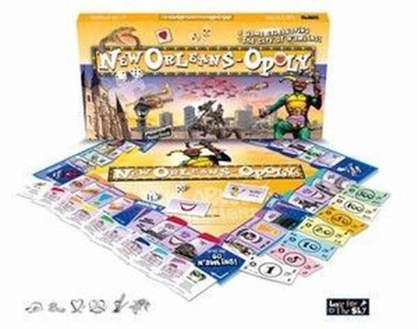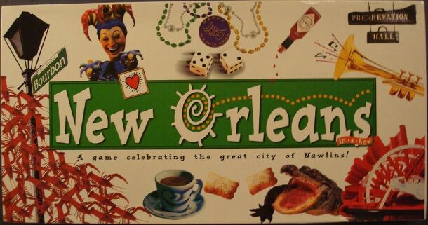 A Monopoly clone from Late For The Sky; this version is based in New Orleans, Louisiana. It has spaces such as Garden District, Louisiana Superdome, The Times-Picayune, Café Du Monde, Steamboat Natchez, French Market, and Bourbon Street. The tokens include a pretzel, heart, crab, steamboat, fish, and saxophone. Cards include local events and staples of...