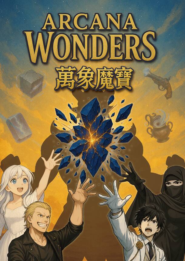 萬象魔寶 ("Arcana Wonders") is a competitive strategy game blending secret factions, magical item auctions, and economic management. Designed for 4–8 players, each participant assumes a unique identity and secretly aligns with a magical faction. Players bid for powerful relics, manage limited resources, and deduce opponents’ alliances through interactive...