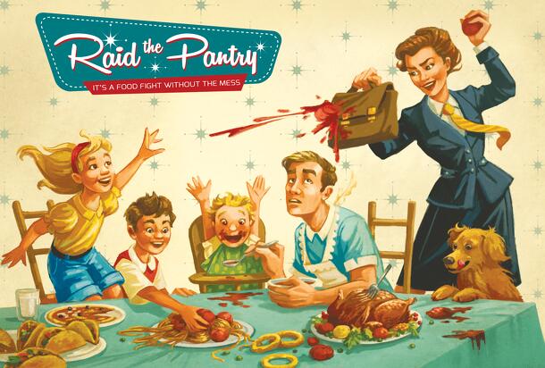 In the cooking-themed card game Raid the Pantry, for 2-4 individuals or two teams of two, players are dealt ingredient and dish cards at the start of play; over the course of the game, players need to collect the ingredients needed to make the dishes in hand. Each completed dish scores you 1-3 points, locks in its ingredients for reuse in other dishes, and...