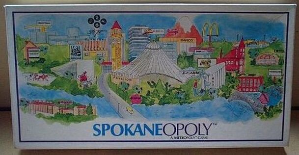 Spokaneopoly is a clone of Monopoly set in the city of Spokane Washington. The game board locations are businesses and attractions from the city. From the publisher: Welcome to a Spokaneopoly, the game of financial domination, As a player, you will become a major part of the entrepreneurial system of our fiscal community, buying, selling and trading...