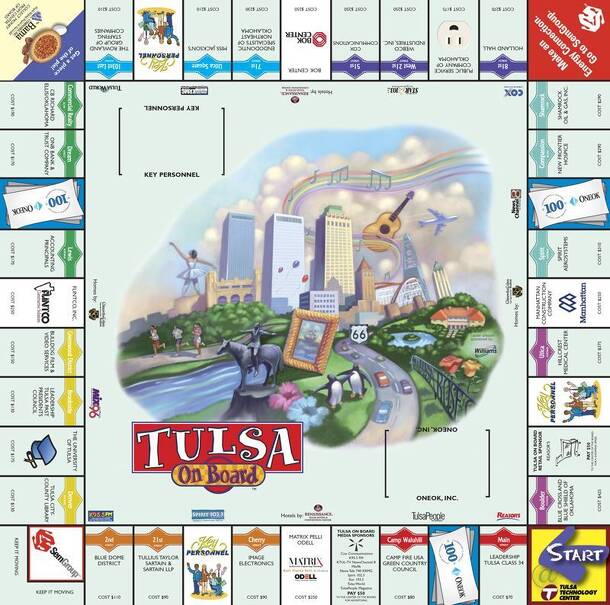 This is a Monopoly clone from Late from the Sky, a publisher that specializes in themed Monopoly games. All the deeds, spaces on the board and cards feature locations and landmarks from Tulsa. Players roll dice to determine how far they move. Landing on a space gives the player the option of buying the property. When a player collects all the properties in...
