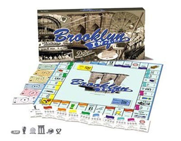 A Monopoly clone from Late For The Sky; this version is based in Brooklyn, New York. It has spaces such as Flatbush Avenue, Mermaid Parade, The Boardwalk, New York Aquarium, Verrazano Narrows Bridge, and Coney Island. The tokens include Egg Cream, Hot Dog, Brooklyn Bridge, Deno's Wonder Wheel, Brooklyn Dodgers Cap, and a Heart. Cards include local events...