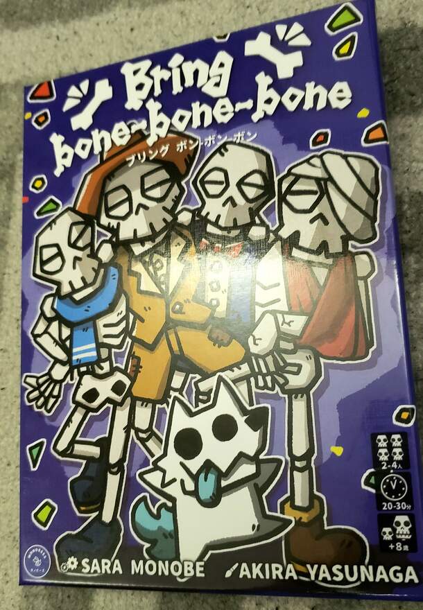 Arclight Game Award Honorable Mention + Work by an 11-year-old designer who placed 17th in the Japanese National Recommendation Board Game Designer General Election A set collection in which a boneless man hunts and breaks bones in order to become a complete bone-man! Players collect bone cards so that they can place all 11 bones on their human body...