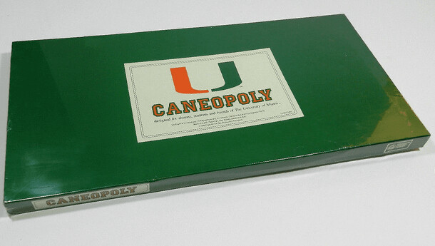 This is a Monopoly clone from Late from the Sky, a publisher that specializes in themed Monopoly games. All the deeds, spaces on the board and cards feature campus landmarks and traditions from the University of Miami (Florida). Players roll dice to determine how far they move. Landing on a space gives the player the option of buying the property. When a...