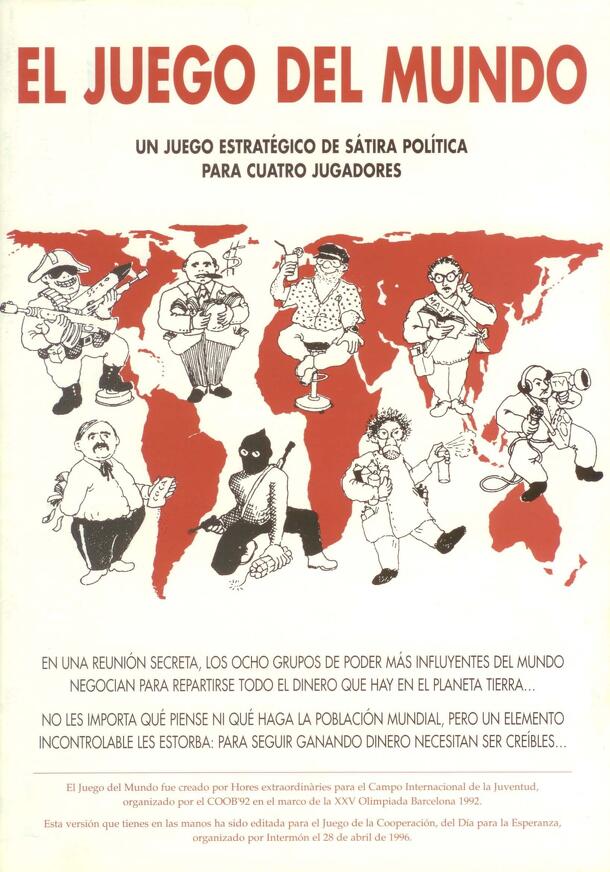 El joc del món ("The game of the world" in catalan) is a light and quite ironic card game on economic and political influence groups and on their efforts to become more powerful while maintaining some credibility. Each player (in a standard 4 player game) represents two great global influence groups and has three voting cards. The cards have effects on the...