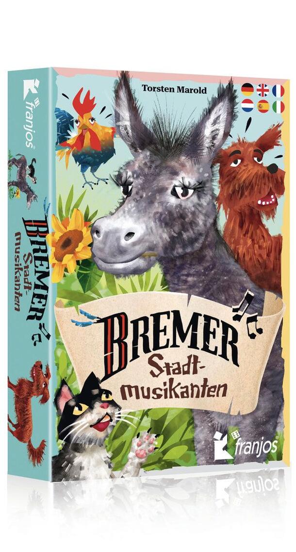 Nice and clever boardgame based on a famous German fairytale. Players move around 4 different animals (donkey, dog, cat and a cock). Like in the fairytale they have to work together against the evil robber. Smaller animals can be placed on top of the bigger animals and only a complete stack of four (which needn't be all from the same player) might win...