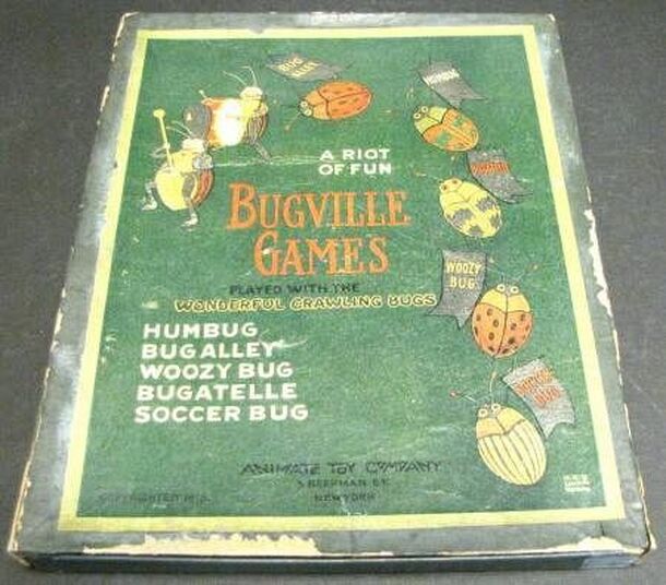 From the back of the box: "A fun numbers game that can be played by all the family. The object of the game is to score the most points by placing/matching the bugs in the best way." Players take it in turns to place tiles so that edges match, and they score points according to how many dots are on the relevant bugs. An egg-timer is included to speed up...