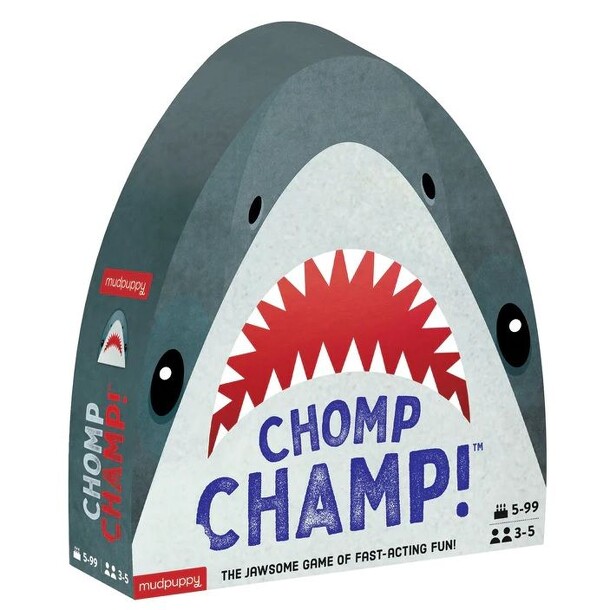 The Chomp Champ! Game from Mudpuppy is a fun twist on the classic game of spoons. Collect 4-of-a-kind and grab a shark tile, all other players then race to grab a shark tile, trying not to be the player left without one. Lose 6 shark teeth tokens and you're out! A wonderful new addition to game nights everywhere! The jawsome game of fast-acting fun!...