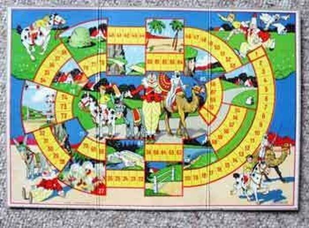 Race game which tries to be original in that you have two pieces (an animal and a rider) you can consider moving after you have thrown the die. After both pieces have started separately, the players must get their two pieces together on the same square. Once achieved, you can move both as one unit because you cannot win whilst your two pieces are apart....