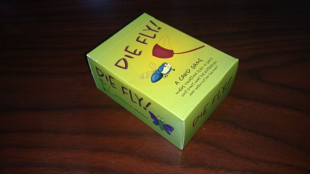 Die Fly! is a 2-6 player card game where each player will take their turn by playing a card onto one of two discard piles. Most of the cards in the deck are flies. When a discard pile has some flies in it any player out of turn can play a fly swatter card. When playing a fly swatter card on one of the discard piles that player then collects all of the...