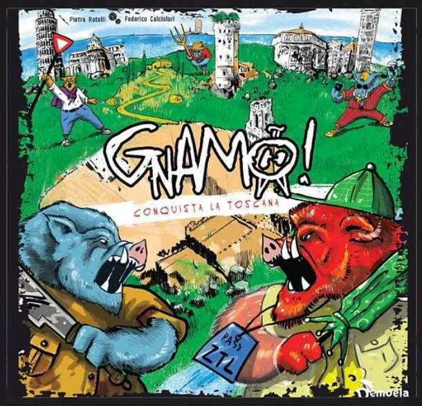 A game of battles and strategy in which 40 territories of Tuscany are fought over by five tribes of wild boars: tourist guides, farmers, citizens, mushroom hunters and "pottini" (bragging people). In this party game ideal for an evening with friends, you will have to show your strategic side to defeat your opponents with cards, dice and fangs. Start...
