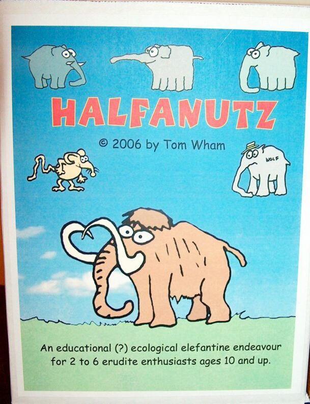 Halfanutz is a card game about elephants. Tom Wham's younger sisters couldn't say the word elephant when they were toddlers so they said "halfanutz" instead. The basic game consists of walkabout and scoring phases. In the walkabout phase the player draws a card. Then they can either push their luck and draw another card or they can take the cards they...