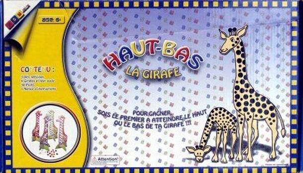 Chacun reçoit en début de partie une girafe-parcours, qui comporte 21 cases numérotées de 5 en 5, de 0 à 100. Le but va être de remplir 7 cases de valeurs croissantes ou décroissantes selon la girafe qu'on a reçue. Pour cela, on jette un dé, et on décide ou non de placer un pion sur la case indiquée par le dé. La dernière case remplie doit être...