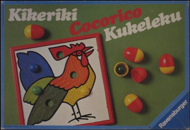 The players have a chicken (or the rooster) with 6 different colors in front of them. Each color contains a hole, in which little balls with the according color have to be placed. Inside the cap of the game are 22 eggs, each egg having a ball with one of the six colors inside. In turn the players draw an egg and open it. Additionally to the colored eggs...
