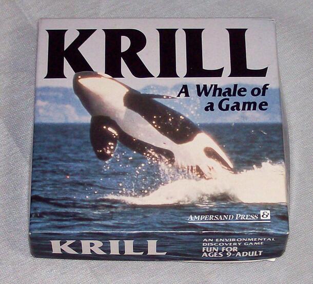 A Whale of a Game Krill is a card game about food chains in Antarctica where Krill, tiny little shrimps, form the base of an entire eco-system. Players draw from the deck and try to create chains of animals and plants which they place on the table. And with the play of the right predator card you can steal cards from other players to add to your own....