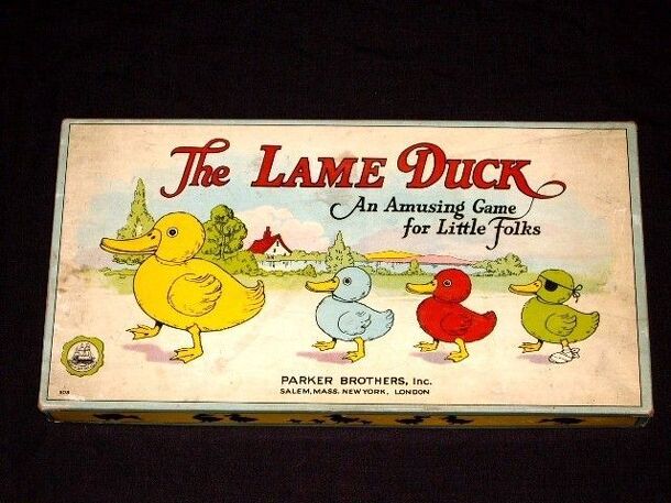 This is an old and simple track game for children. Using a spinner for movement you advance your duck token along the paths trying to reach the Duck Pond. The paths are concentric circles with the Duck Pond in the center. If you land on a "Duck In" space, you may enter the next circle. If you land on a "Strong Duck" space, you get another turn. If you land...