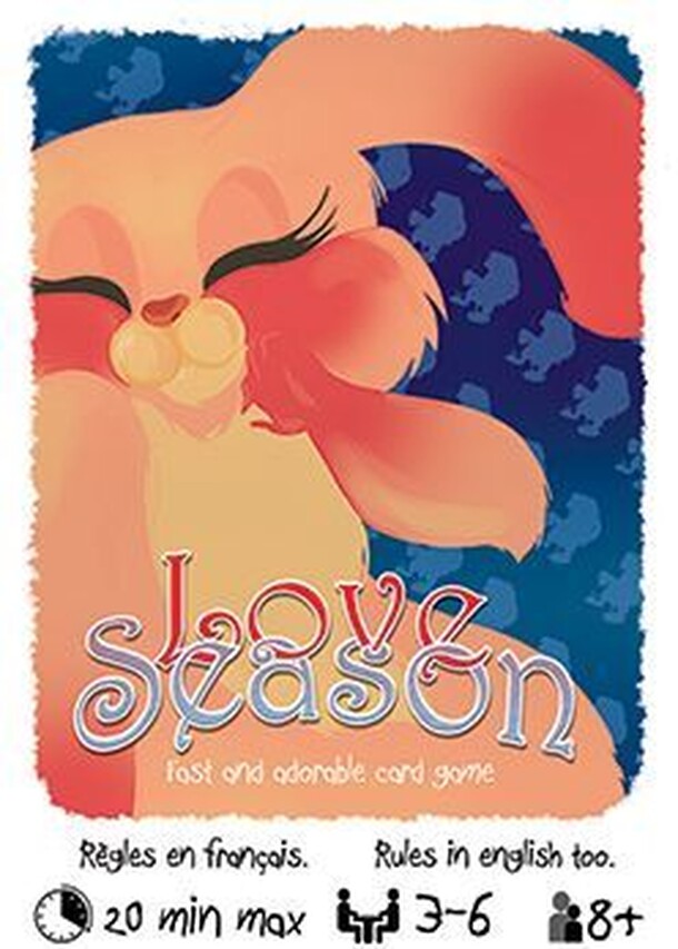 From the designer: Love Season is a card game about Little bunnies' love affairs. In this game of chase you are a little bunny trying to go home but bunny girls find you so cute they won't let you go away. For 3 to 6 players from 8 years old and up (works best with adults and teenagers ;) ), this game can take less than 20 min to play. It can go faster...
