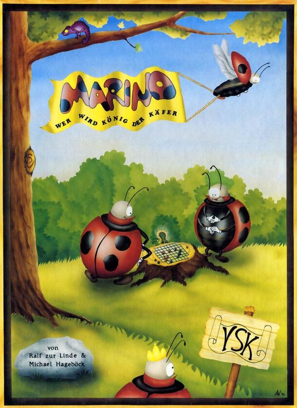 (From the rules) Who will become king of the bugs? There are two paths leading to the coronation of the king of the bugs: the direct way is to crawl across the board. But this only works if your opponent isn’t there! Alternatively, one can sort through the bluffing of your opponents and defeat their Marinos. Note, though, that each error brings that...