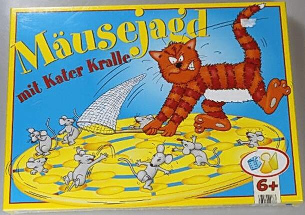 Objective: Try to protect all your mice - put them into a safe hideout. 'Kater Kralle' (cat Claw) is busy with hunting mice and tries to imprison them. Only those who can hide themselves below the turning 'cheese wheel' are safe. The first player who can protect all his/her mice wins the game. Content: 1 'cheese wheel' (board) 18 mice 1 'Kater Kralle' 4...