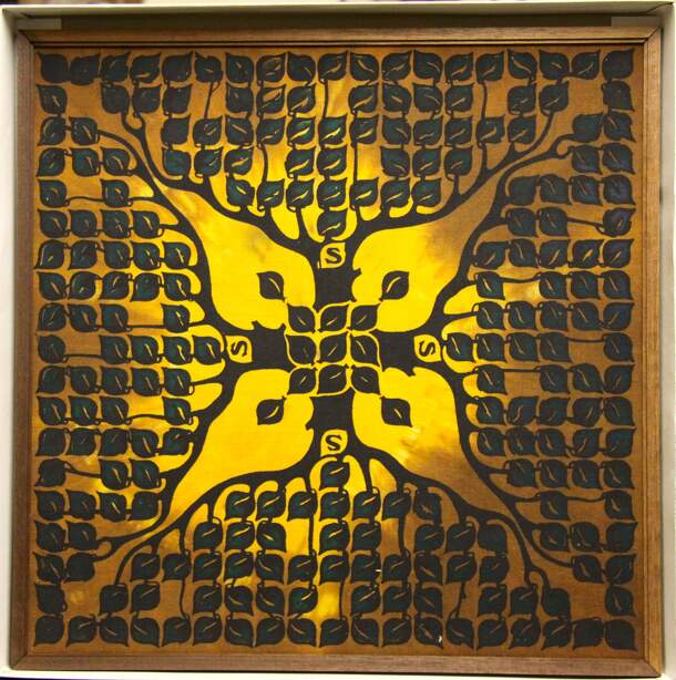 The game board shows 4 trees which grow from the center to all 4 edges. Each leaf of the trees is one field where the figures can move. There are some spaces between the leaves, where the figures have to move around. The figures can even move from branch to branch or from tree to tree if the leaves are neighbored. At the beginning of the game places his 8...