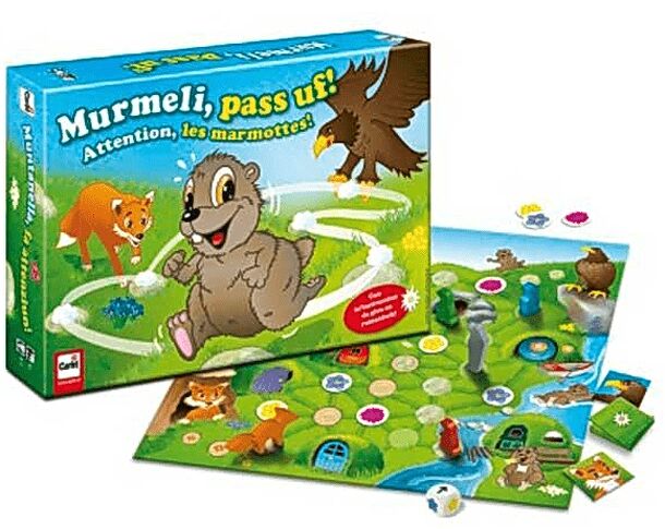 Marmots are crazy for flowers. But they must be careful when they walk through the lush meadows and look for their favorite meal. Fox and eagles are in fact crazy for these little animals... The flowers in 3 colors are distributed on the game board face-up. In his turn player rolls dice and take the action indicated. If die shows flower the player moves...