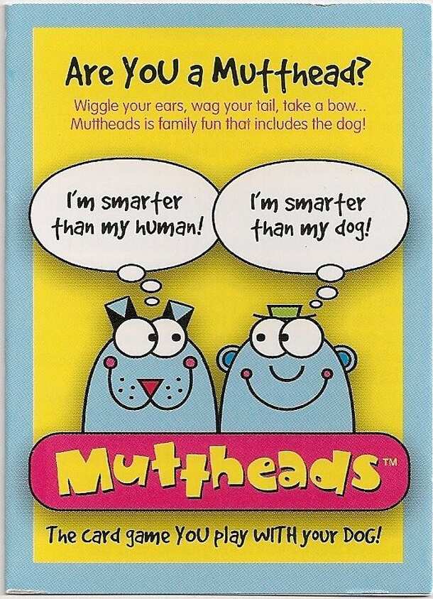 The CARD game for Humans and Dogs to play together! The new CARD GAME people and dogs play together. Sniff your dog, sniff your human... balance a treat on your nose...wag your tail...play dead . . . Muttheads is great family fun and costs less than an eventing at the movies. For 1 or more dogs and 2 or more humans (aged 8 years and older). The OBJECT OF...