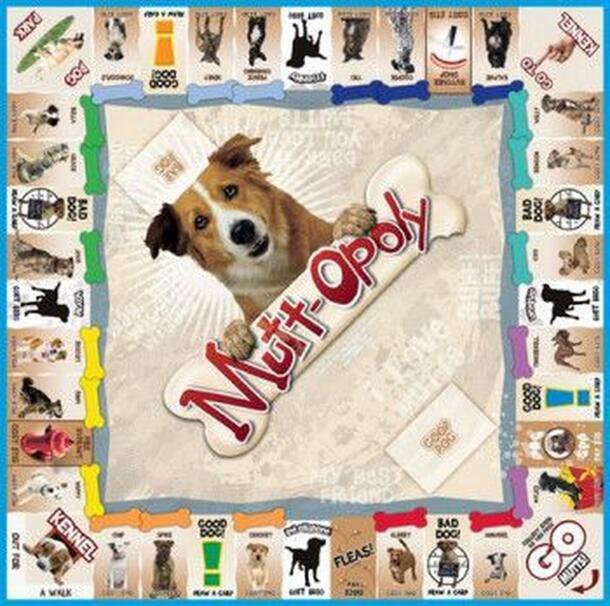 Mutt-Opoly is a mutt-themed version of the game Monopoly, "celebrating the world's most popular dog." In this roll-and-move property trading game, properties are individual mutts that can be traded between players. Properties also include themed locations such as a fire hydrant and butcher shop. Other themed features of the game are Dog Toys (rather than...