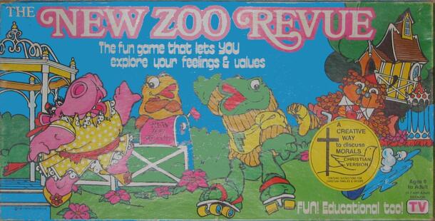 Billed as "the fun game that lets you explore your feelings & values", this TV show-inspired game seems to be in keeping with its Ungame ancestry. The goal of the game is nominally to collect a set of cards which match your "Winning Ticket", where the four types of cards correspond to the four main characters from "The New Zoo Review" (Freddie the Frog...