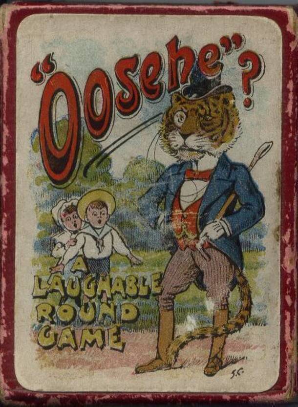 A card game featuring lovely images of animals.Each player chooses a different animal, from the 8 listed on the Key Card. Cards are dealt out and kept by each player in a face-down stack. In his turn, a player must turn over the top card. If it matches any other face-up card, both players with the now matching cards must call "Oosehe"?, and name the animal...