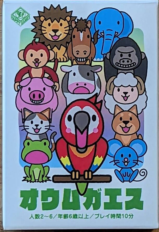 In オウムガエス, players are attempting to remember the locations of face down animals cards. On their turn, a player will look at two cards; if they match, they will collect them and take another turn, but if they do not, they will be returned face down and the next player will take their turn. However, the cards are never shown to the other players. Instead...