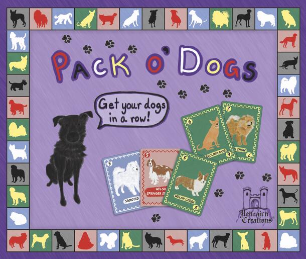 Pack o’ Dogs is a quick 2-player card game featuring unique artwork of 40 dogs and 4 cats. Both players flip their cards over for simultaneous play. Form packs on the table with a hierarchy of determining which card is best when. The dogs form their packs with dogs of the same size, or dogs of neighboring sizes in the same color. Cats are unique...