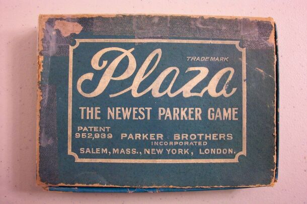 PLAZA is played with a five-suited pack of 60 cards, the suits being distinguished from each other by color (each color also has a little picture of an animal to help distinguish suits), the cards run from one to twelve in each color. A game turn consists of Draw, Play, Discard. Similar colored cards are placed in a row and similar numbered cards are...