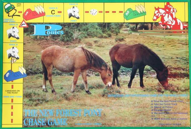 Ponies - The New Forest Pony Chase Game From the Box: "Ponies", as it is popularly called in our family, was invented heres (Sway) in the New Forest in about 1985 to keep our children quiet on wet days. Firstly we wanted an interesting game for younger children that was not contentious and would not end in arguments and tears. "Ponies" was based upon a...