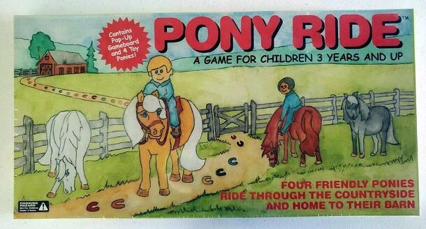From the box: Do you like ponies? Experience the country life by playing PONY RIDE. Pony Ride is an educational and fun game where children can learn about a pony barn and a real farm! In the PONY RIDE game you will... Spin the spinner and follow the hoof prints along the trail through the countryside! BE THE FIRST PONY HOME TO THE BARN! Cross a...