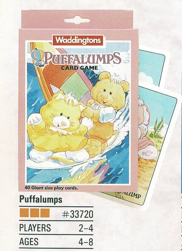 From the game box: The Puffalumps are a lovable family of whimsical baby animals who travel the world in their hot-air balloon. The family includes a bear cub, a bunny, a cow, a kitten, a mouse and a puppy, who can all be found in this beautifully illustrated jumbo card game. The game play is easy. Just choose a "bingo" card and try to collect the...