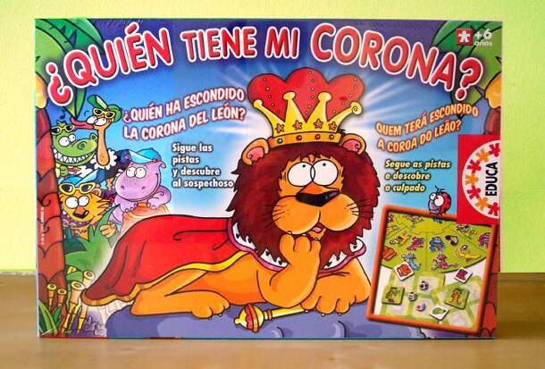 Who has my crown? Today is the day of the lion's coronation but a joker has hidden it. Who could have been: the crocodile, the hippopotamus, the tiger or the lion? In Who has my crown? players throw three dices that indicate the kind, the colour and the object of the animal at the board who has a clue. Looking where is he signalizing, the player will find...