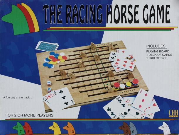 The game requires a standard deck of cards (included) and poker chips (not included) to play. Set all the horses at the starting gate. The player to the left of the dealer rolls the dice to determine which four horses are scratched from the race. If a 2 and 6 were rolled on the dice, then horse 8 is scratched and all players holding an eight from the deck...